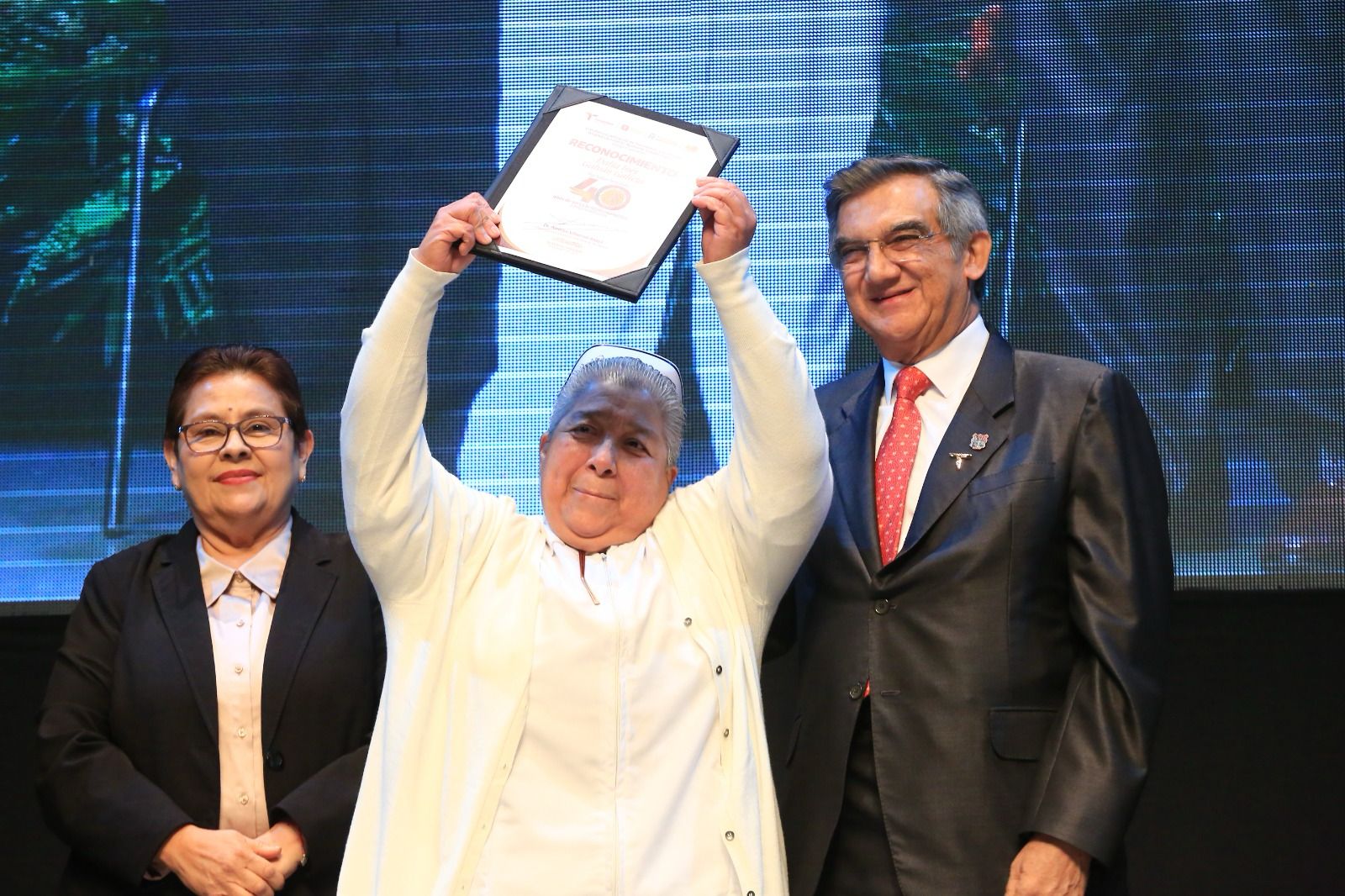 Al presidir una emotiva ceremonia este sábado en el teatro Amalia G. de Castillo Ledón, y tras entregar 50 reconocimientos a personal con 40 años de servicio y a cinco exdirectores, el gobernador aseguró que los mejores días de esta noble institución y, en general, de la salud pública de Tamaulipas y de México “están por venir”, dijo.