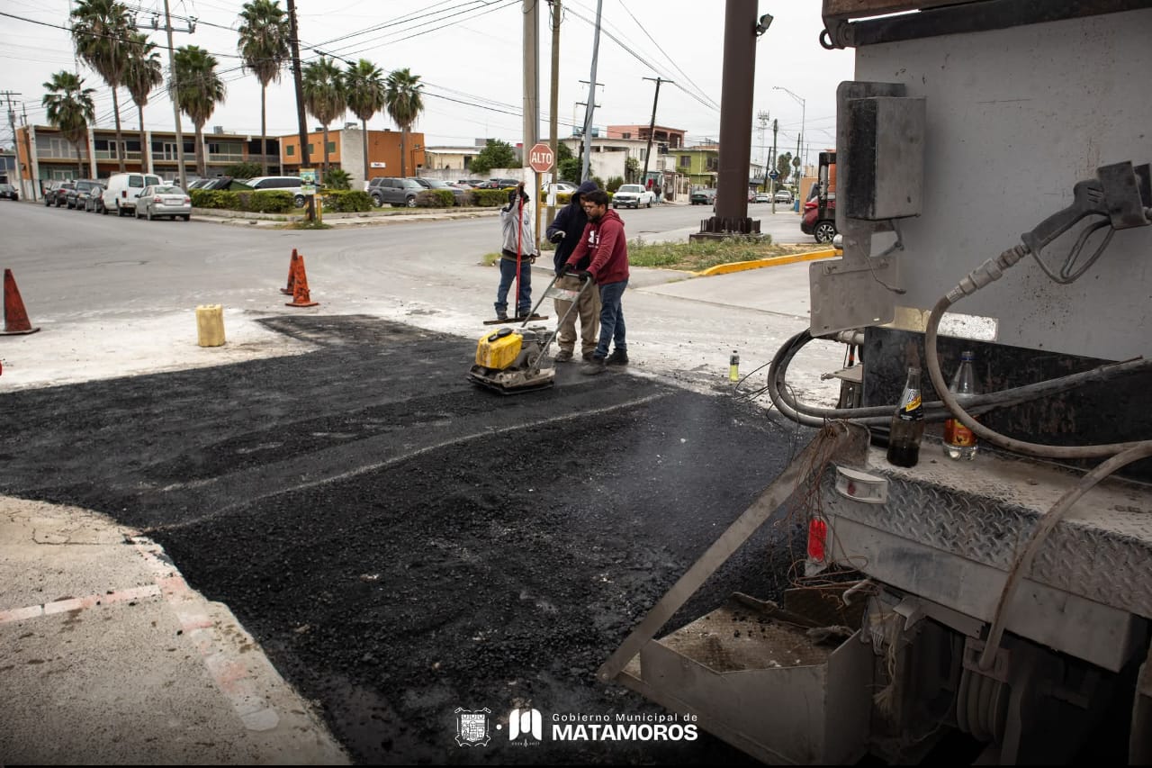 El alcalde Beto Granados mantiene activo el programa de mejoramiento vial en Matamoros; este lunes, las cuadrillas municipales trabajaron en distintas vialidades de la ciudad, atendiendo sectores como Victoria Sección Fiesta, Valle Verde, 5 de Marzo, Derechos Humanos, La Cima, Lucero, Sección 16, Cabras Pintas, San Rafael, Villas Las Torres, su Sector 1 y la Zona Centro.